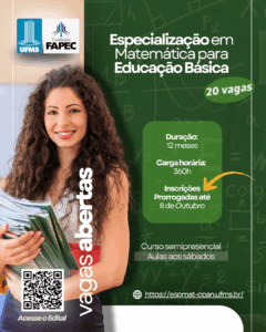 As inscrições para o curso de Especialização em Matemática para Educação Básica foram prorrogadas até o dia 8 de outubro de 2025.